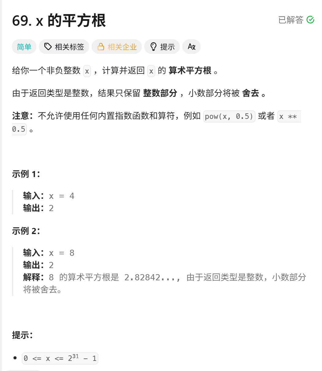 public int mySqrt(int x) {