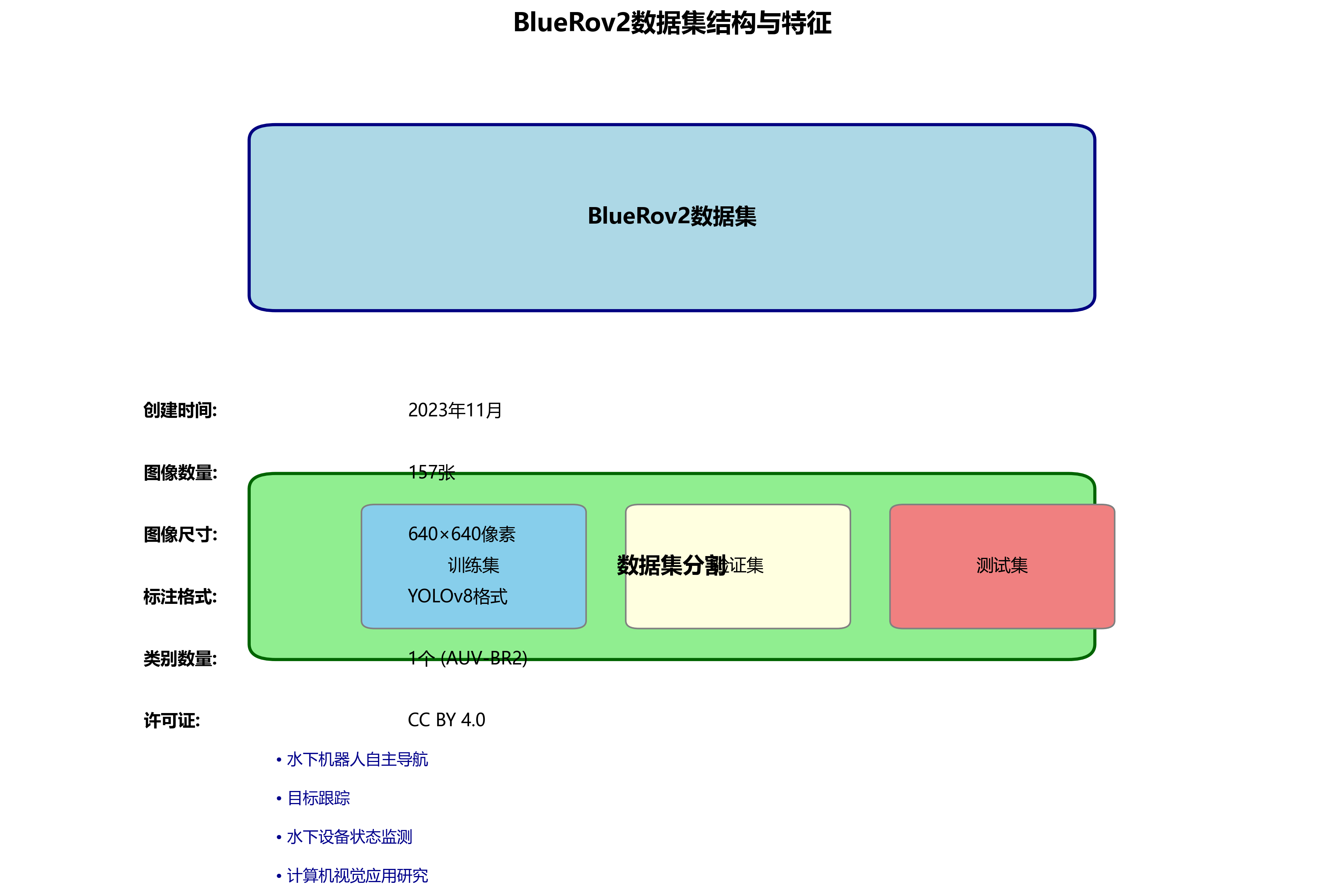 构建了专门针对水下AUV-BR2机器人的数据集,包含1000张覆盖多种环境条件的图像,为模型训练提供了丰富的数据支持。