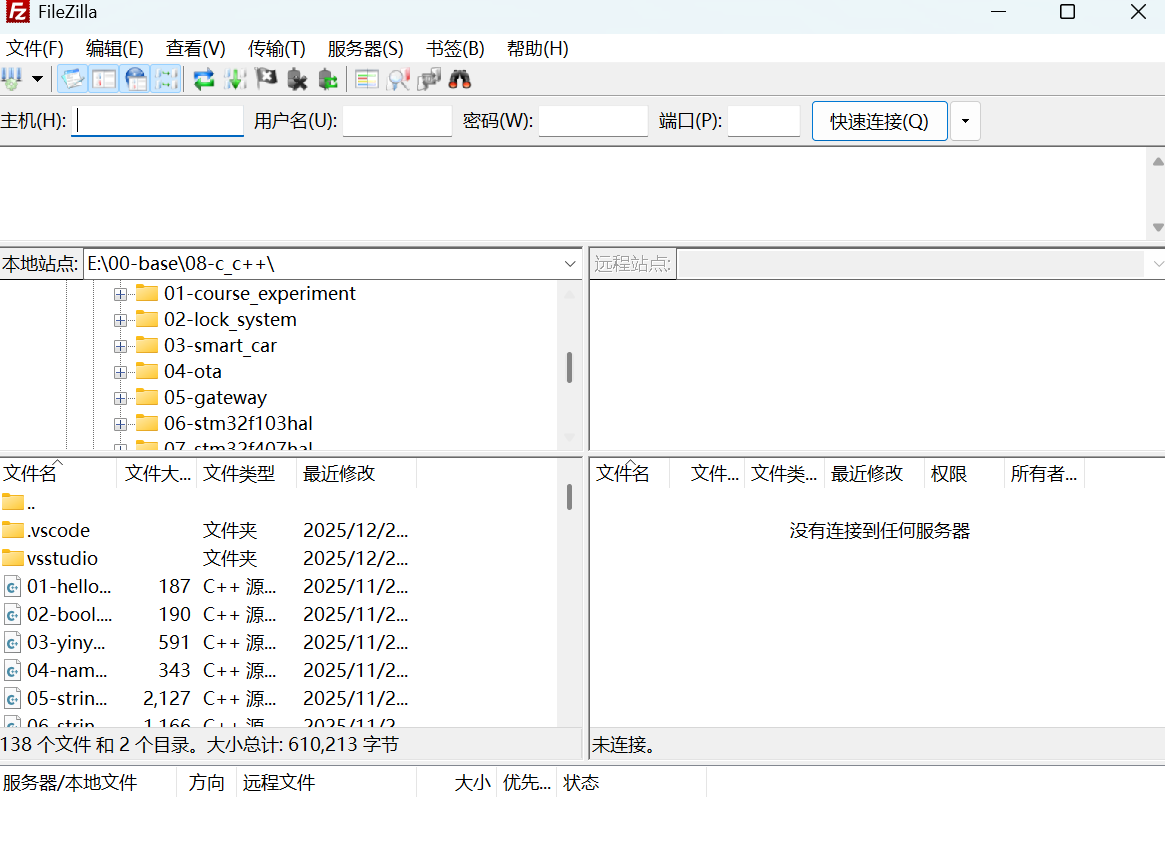 将对应信息填写完毕后点击OK即可登录成功啦。然后是filezilla软件 ,该软件可以实现window和ubuntu系统中的文件互传,该软件使用简单运行软件后会出现如下界面: