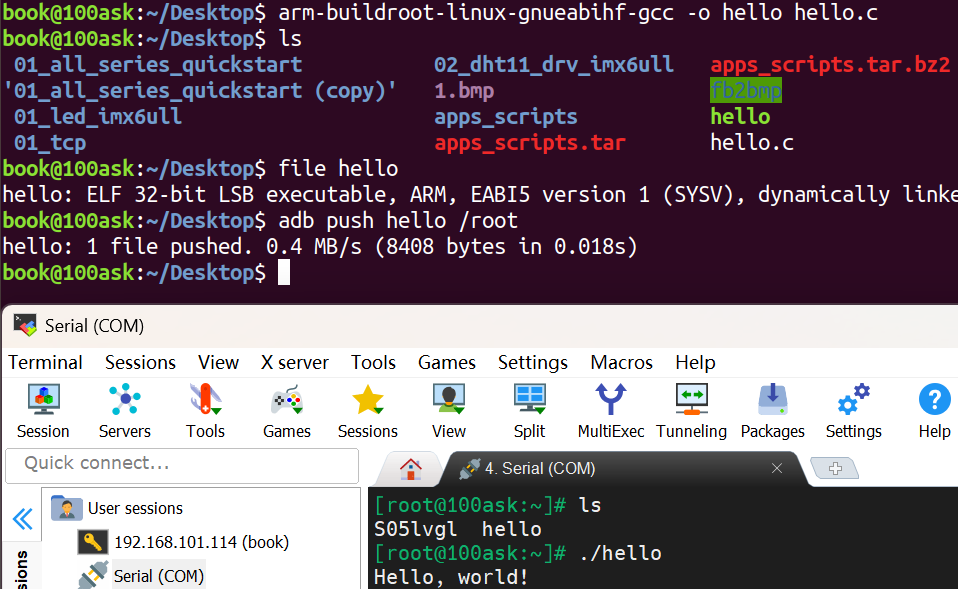 在Ubuntu系统中使用gcc进行文件编译 时,编译出的文件只能在pc机上运行 而不能在开发板上运行,要编译出能在开发板上运行 的程序则需要使用到交叉编译工具 ,使用交叉编译工具进行文件编译后使用file命令 来查看文件信息可见其支持ARM等系统也就可以在开发板上运行了,如下: