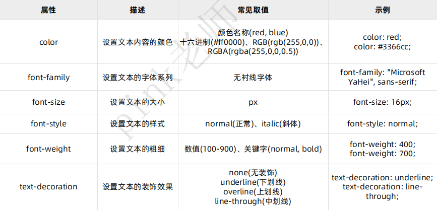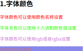 另有:rgba(255,0,0, 0.3) 文字透明最后一个数值取值 0~10完全透明 1 完全不透明
