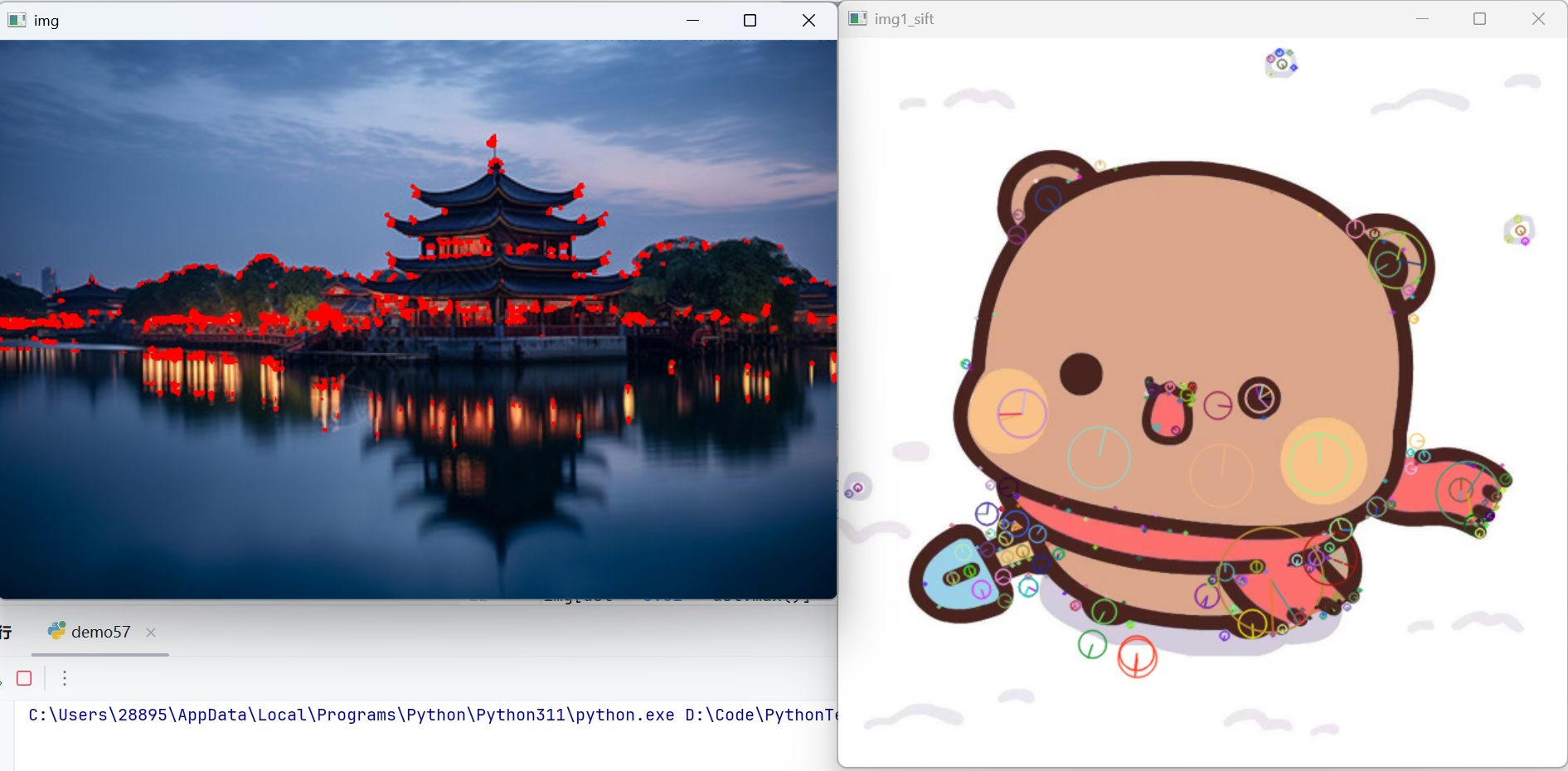 sift.compute()方法计算关键点的描述符,每个描述符是一个128维的向量,描述了关键点周围区域的局部特征。这些描述符可以用于后续的特征匹配任务。