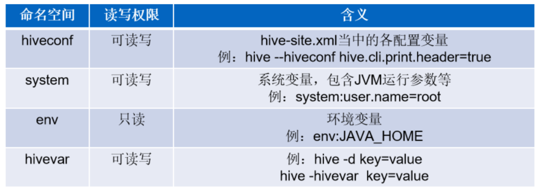 hive当中的参数、变量,都是以命名空间开头