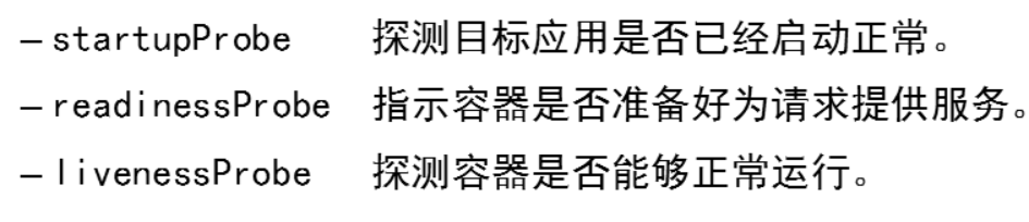 root@master \~\]# kubectl replace --force -f web1.yaml > pod "web1" deleted > > pod/web1 replaced # 多任务顺序执行,必须全部成功后 \[root@master \~\]# **kubectl get pods -w** > NAME READY STATUS RESTARTS AGE > > web1 0/1 Init:0/2 0 1s > > web1 0/1 Init:Error 0 5s > > web1 0/1 Init:0/2 1 (1s ago) 6s > > web1 0/1 Init:1/2 1 (5s ago) 10s > > web1 0/1 Init:1/2 1 11s > > web1 0/1 Init:Error 1 14s > > web1 0/1 Init:1/2 2 (1s ago) 15s > > web1 0/1 PodInitializing 0 18s > > web1 1/1 Running 0 19s #### 启动探针  # 用于保护慢启动的服务 \[root@master \~\]# vim web2.yaml > --- > > kind: Pod > > apiVersion: v1 > > metadata: > > name: web2 > > spec: > > containers: > > - name: web > > image: myos:httpd > > **startupProbe: # 启动探针** > > **initialDelaySeconds: 30 # 首次检查延时** > > **failureThreshold: 3 # 可失败的次数** > > **periodSeconds: 10 # 检查间隔** > > **tcpSocket: # 使用 tcp 协议检测** > > **port: 80 # 端口号** \[root@master \~\]#**kubectl apply -f web2.yaml** > pod/web2 created \[root@master \~\]#**kubectl get pods -w** > NAME READY STATUS RESTARTS AGE > > web2 0/1 Running 0 1s > > web2 1/1 Running 0 41s #### 存活探针 # 判断某个核心资源是否可用,在 Pod 的全部生命周期中(重建容器) \[root@master \~\]# vim web2.yaml > --- > > kind: Pod > > apiVersion: v1 > > metadata: > > name: web2 > > spec: > > containers: > > - name: web > > image: myos:httpd > > startupProbe: > > initialDelaySeconds: 30 > > failureThreshold: 3 > > periodSeconds: 10 > > tcpSocket: > > port: 80 > > **livenessProbe: # 定义存活探针** > > **timeoutSeconds: 3 # 服务影响超时** > > **httpGet: # 使用 HTTP 协议检测** > > **path: /info.php # 请求的 URL 路径** > > **port: 80 # 服务端口号** \[root@master \~\]# **kubectl apply -f web2.yaml** > pod/web2 created \[root@master \~\]# **kubectl get pods -w** > NAME READY STATUS RESTARTS AGE > > web2 0/1 Running 0 5s > > web2 1/1 Running 0 41s > > web2 0/1 Running 1 (1s ago) 112s > > web2 0/1 Running 1 (30s ago) 2m21s > > web2 1/1 Running 1 (30s ago) 2m21s # 在其他终端执行测试 \[root@master \~\]# **kubectl exec -it web2 -- rm -f info.php** #### 就绪探针 # 附加条件检测,在 Pod 的全部生命周期中(禁止调用,不重启) \[root@master \~\]# vim web2.yaml > --- > > kind: Pod > > apiVersion: v1 > > metadata: > > name: web2 > > spec: > > containers: > > - name: web > > image: myos:httpd > > startupProbe: > > initialDelaySeconds: 30 > > failureThreshold: 3 > > periodSeconds: 10 > > tcpSocket: > > port: 80 > > livenessProbe: > > timeoutSeconds: 3 > > httpGet: > > path: /info.php > > port: 80 > > **readinessProbe: # 定义就绪探针** > > **failureThreshold: 3 # 失败确认次数** > > **periodSeconds: 5 # 检测间隔** > > **exec: # 执行命令进行检测** > > **command: # 检测命令** > > **- sh** > > **- -c** > > **- \|** > > **read ver \ > **if (( ${ver:-0} \> 2 ));then** > > **res=0** > > **fi** > > **exit ${res:-1} # 版本大于 2 成功,否则失败** \[root@master \~\]# **kubectl replace --force -f web2.yaml** > pod/web2 created \[root@master \~\]# kubectl get pods -w > NAME READY STATUS RESTARTS AGE > > web2 0/1 Running 0 5s > > web2 0/1 Running 0 40s > > web2 1/1 Running 0 60s > > web2 0/1 Running 0 90s # 在其他终端执行测试 \[root@master \~\]#**kubectl exec -it web2 -- bash** \[root@web2 \~\]# **echo "3" \>/var/www/html/version.txt** \[root@web2 \~\]# **echo "1" \>/var/www/html/version.txt** #### 事件处理函数 # 在主容器启动之后或结束之前执行的附加操作 \[root@master \~\]# vim web3.yaml > --- > > kind: Pod > > apiVersion: v1 > > metadata: > > name: web3 > > spec: > > containers: > > - name: web > > image: myos:httpd > > **lifecycle: # 定义启动后事件处理函数** > > **postStart:** > > **exec:** > > **command:** > > **- sh** > > **- -c** > > **- \|** > > **echo "自动注册服务" \|tee -a /tmp/web.log** > > **sleep 10** > > **preStop: # 定义关闭前事件处理函数** > > **exec:** > > **command:** > > **- sh** > > **- -c** > > **- \|** > > **echo "清除已注册的服务" \|tee -a /tmp/web.log** > > **sleep 10** \[root@master \~\]# kubectl apply -f web3.yaml > pod/web3 created \[root@master \~\]# **kubectl exec -it web3 -- bash** \[root@web3 html\]# cat /tmp/web.log > 自动注册服务 \[root@web3 html\]# cat /tmp/web.log > 自动注册服务 > > 清除已注册的服务 # 在其他终端执行 \[root@master \~\]# **kubectl delete pods web3** pod "web3" deleted ### Pod 资源管理 * **memtest.py 需准备** # 创建 Pod \[root@master \~\]# vim app.yaml > --- > > kind: Pod > > apiVersion: v1 > > metadata: > > name: app > > spec: > > containers: > > - name: web > > image: myos:httpd \[root@master \~\]# kubectl apply -f app.yaml pod/app created # 使用 memtest.py 占用内存资源 \[root@master \~\]# **kubectl cp memtest.py app:/usr/bin/** \[root@master \~\]# **kubectl exec -it app -- bash** \[root@app html\]# **memtest.py 1000** > use memory success > > press any key to exit : # 使用 info.php 占用计算资源 \[root@master \~\]# **curl http://10.244.1.10/info.php?id=9999999** # 在另一个终端监控 \[root@master \~\]# **watch -n 1 'kubectl top pods'** > NAME CPU(cores) MEMORY(bytes) > > app 993m 19Mi > > app 3m 1554Mi #### 资源配额 \[root@master \~\]# vim app.yaml > --- > > kind: Pod > > apiVersion: v1 > > metadata: > > name: app > > spec: > > containers: > > - name: web > > image: myos:httpd > > **resources: # 配置资源策略** > > **requests: # 配额策略** > > **cpu: 1500m # 计算资源配额** > > **memory: 800Mi # 内存资源配额** \[root@master \~\]# kubectl replace --force -f app.yaml > pod "app" deleted > > pod/app replaced \[root@master \~\]# **kubectl describe pods app** > ...... > > Ready: True > > Restart Count: 0 > > Requests: > > cpu: 1500m > > memory: 800Mi * **验证配额策略** \[root@master \~\]# **sed "s,app,app1," app.yaml \|kubectl apply -f -** **pod/app