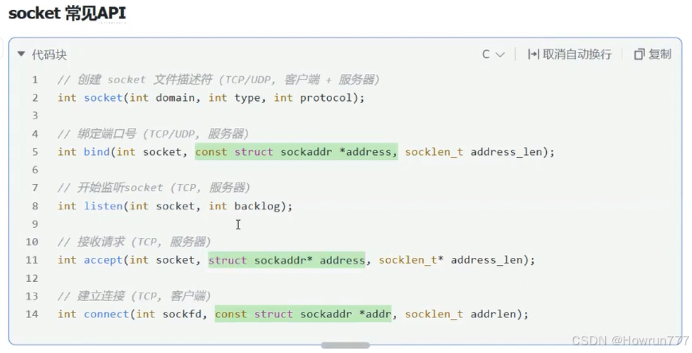 下面我给你逐行详细拆解 这 5 个 socket 核心 API,讲清它们的作用、参数含义、返回值、使用场景和关键细节,帮你彻底搞懂 TCP 网络编程的核心流程。