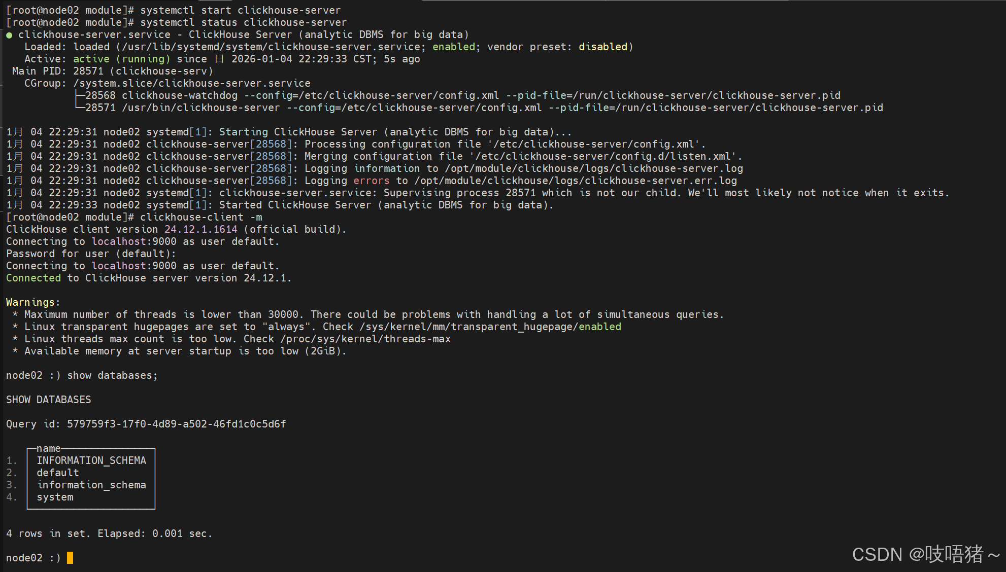 chown -R clickhouse:clickhouse /opt/module/clickhouse/
