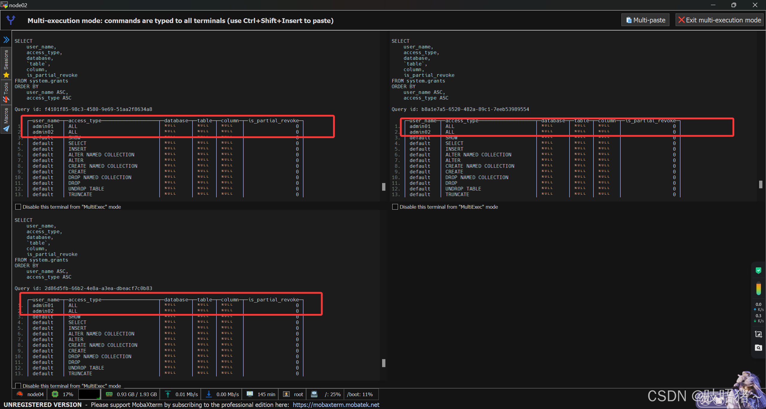 GRANT ALL ON *.* TO 'admin02' ON CLUSTER myCluster WITH GRANT OPTION;