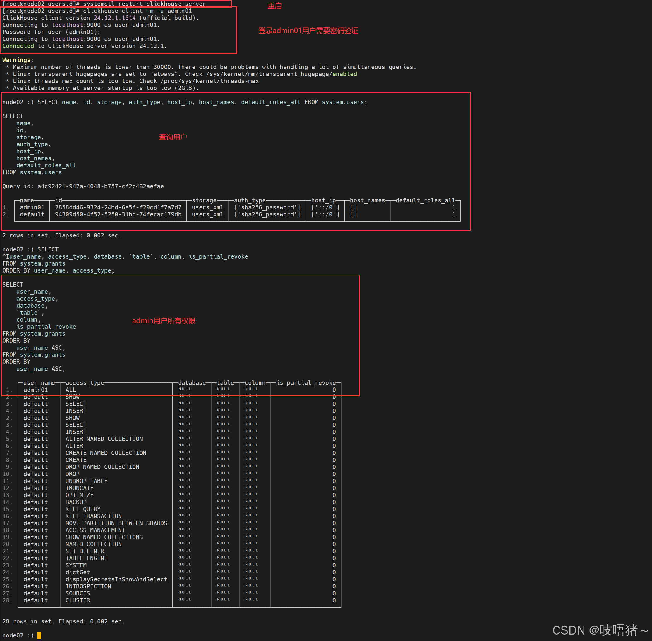 - 重启clickhouse并验证