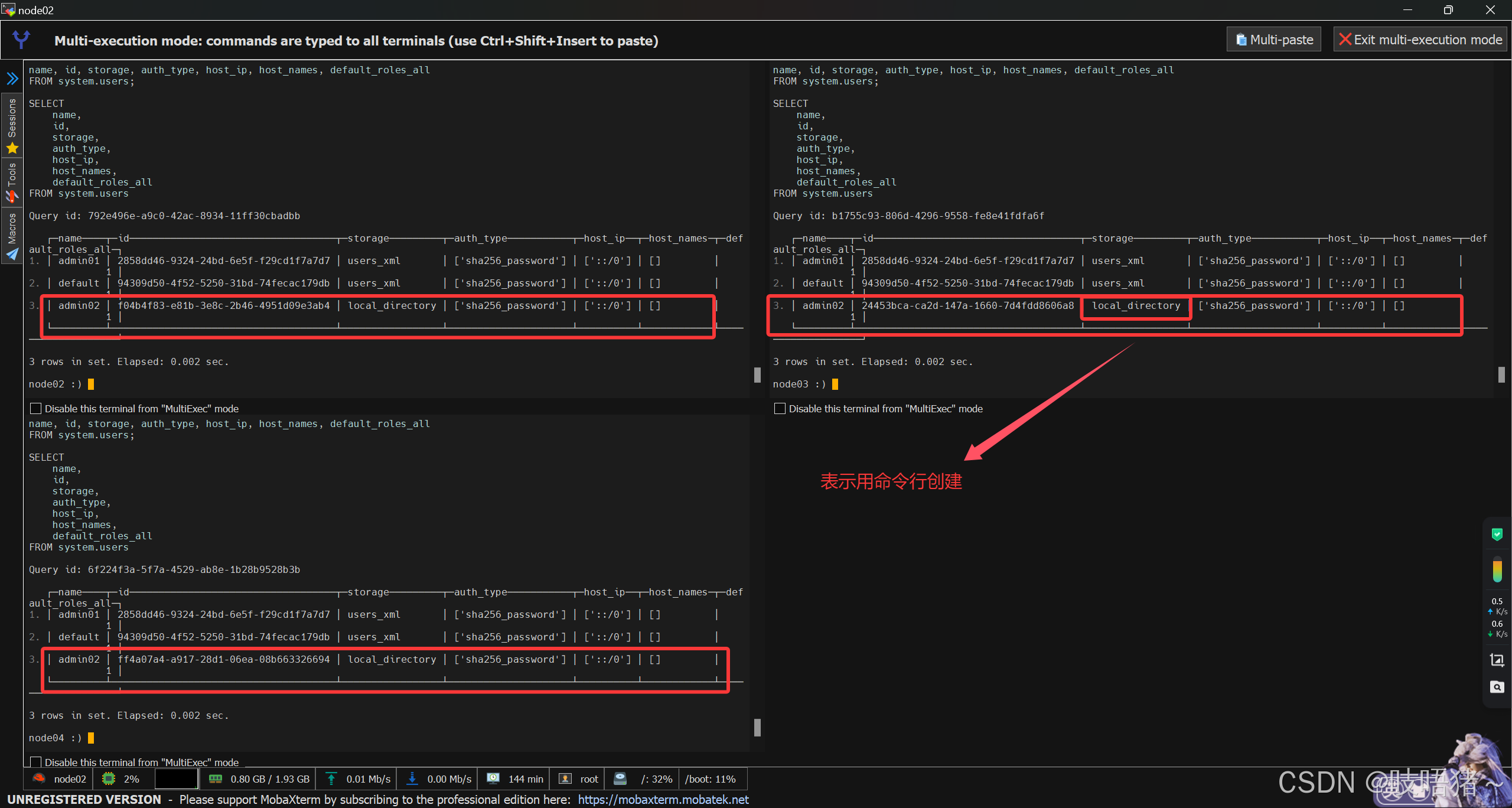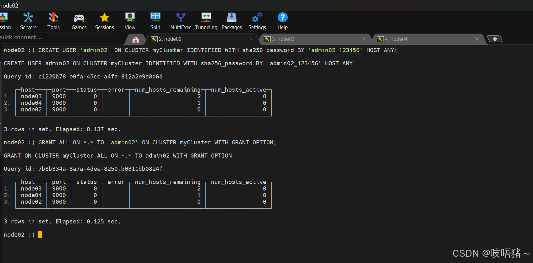 - 创建用户:一个节点执行即可