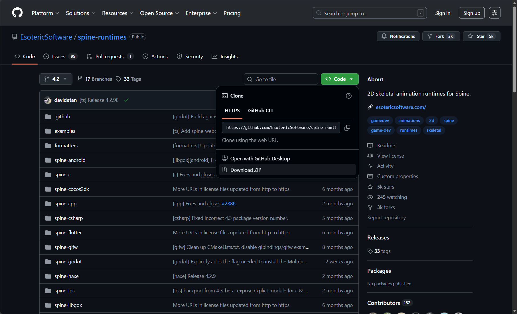 - 打开官方仓库:https://github.com/EsotericSoftware/spine-runtimes