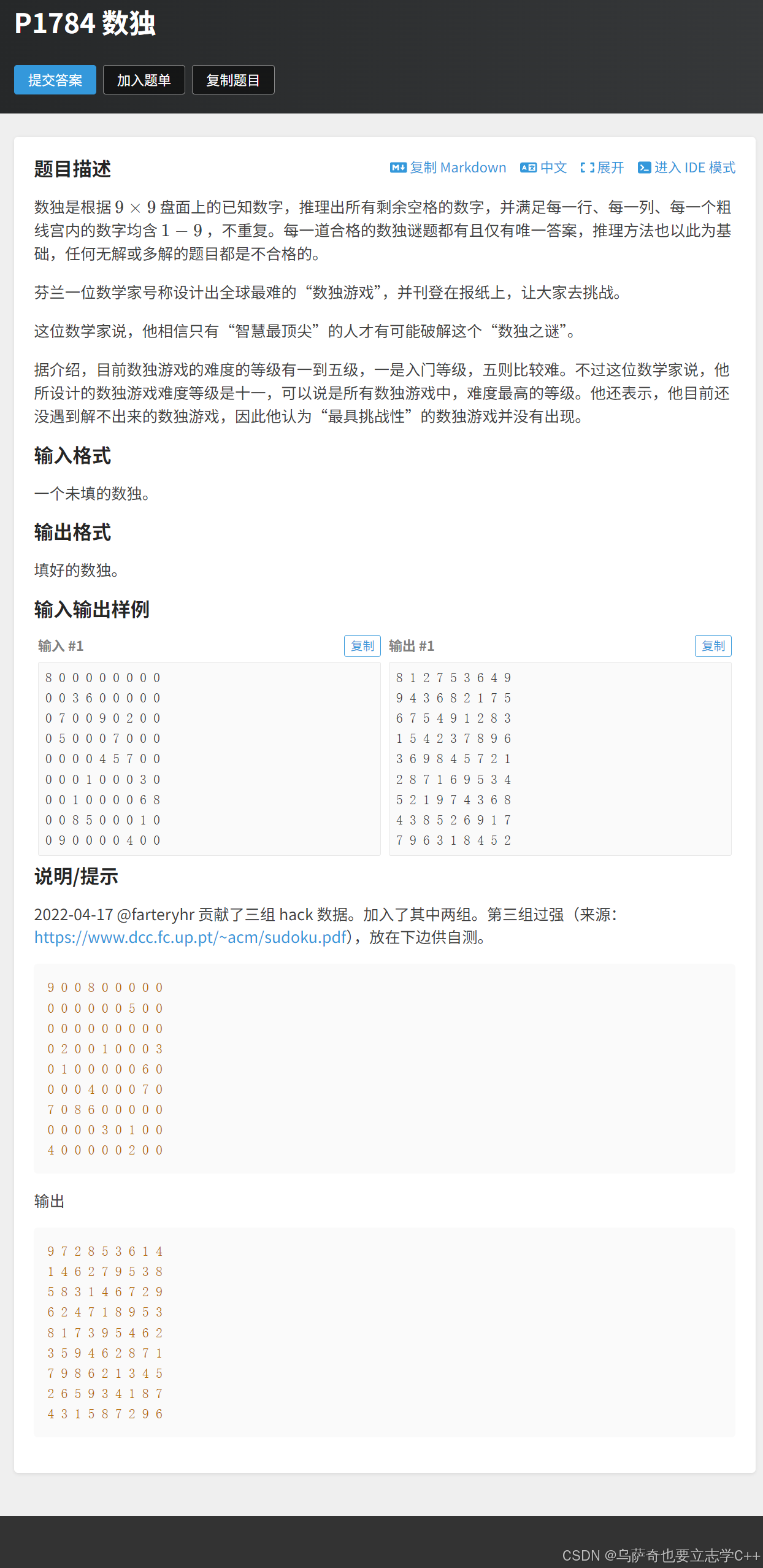 int a[N][N]; //存储原数独