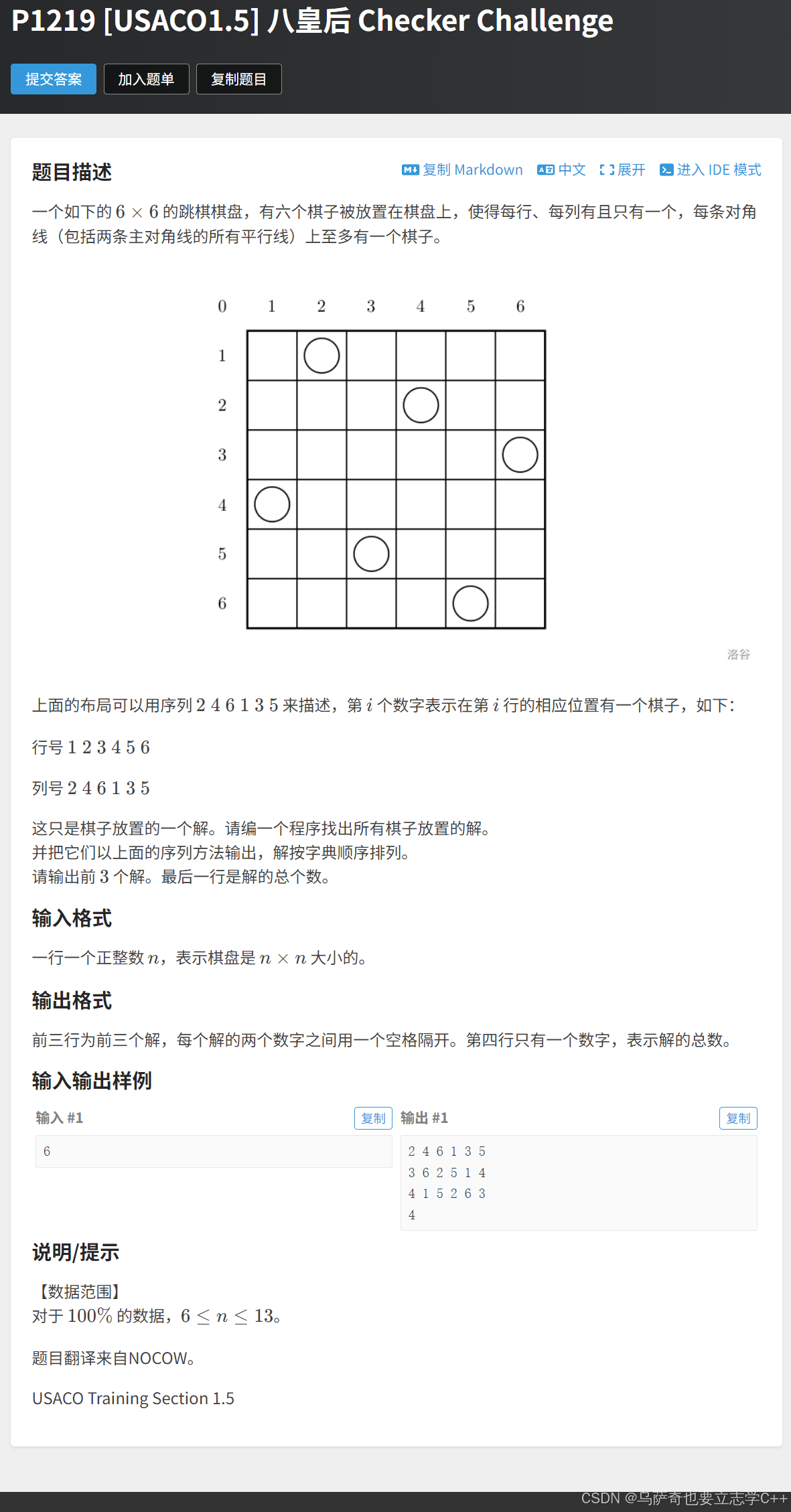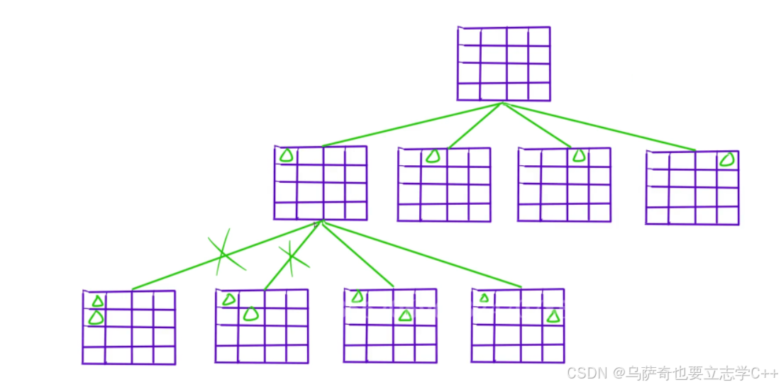 首先行我们不用判断,因为我们就是按行的顺序摆放的。 然后判断列,我们用一个bool数组col标记哪些列摆放过。