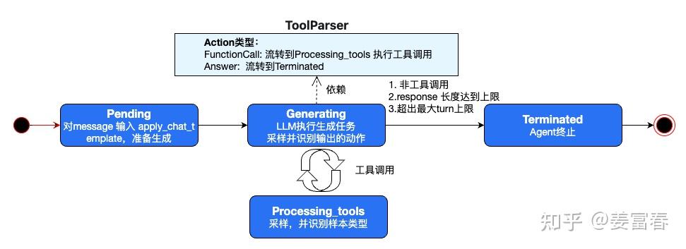 - 实现名为my_tool_agent的Multi Turn Agent: MyToolAgentLoop。在类初始化时,通过配置实例化定义的工具(MyWebSearchTool)和实例化ToolParser类(MyModelToolParser)