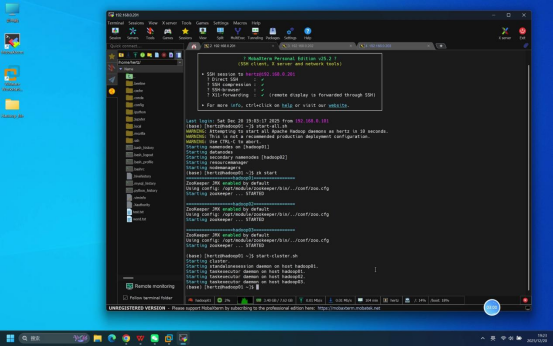 操作说明:打开本地Mobaxterm工具,分别建立与3台虚拟机(hadoop01、hadoop02、hadoop03)的SSH远程连接。
