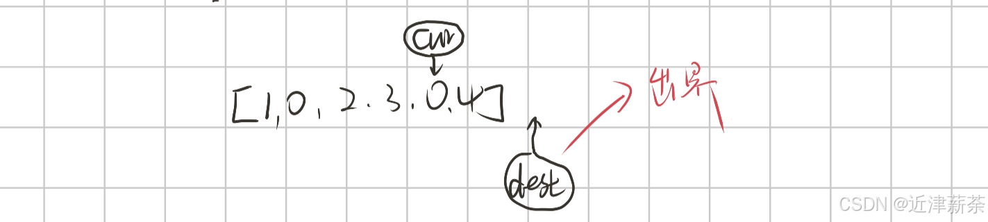 swap(nums[cur],nums[++dest]);//如果dest给0,这里要给后置++