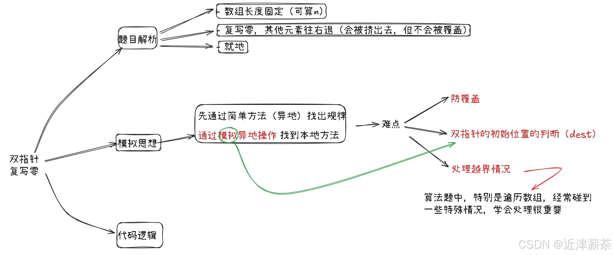 题中要求就地操作,于是我们尝试将异地的思路套到就地里来: