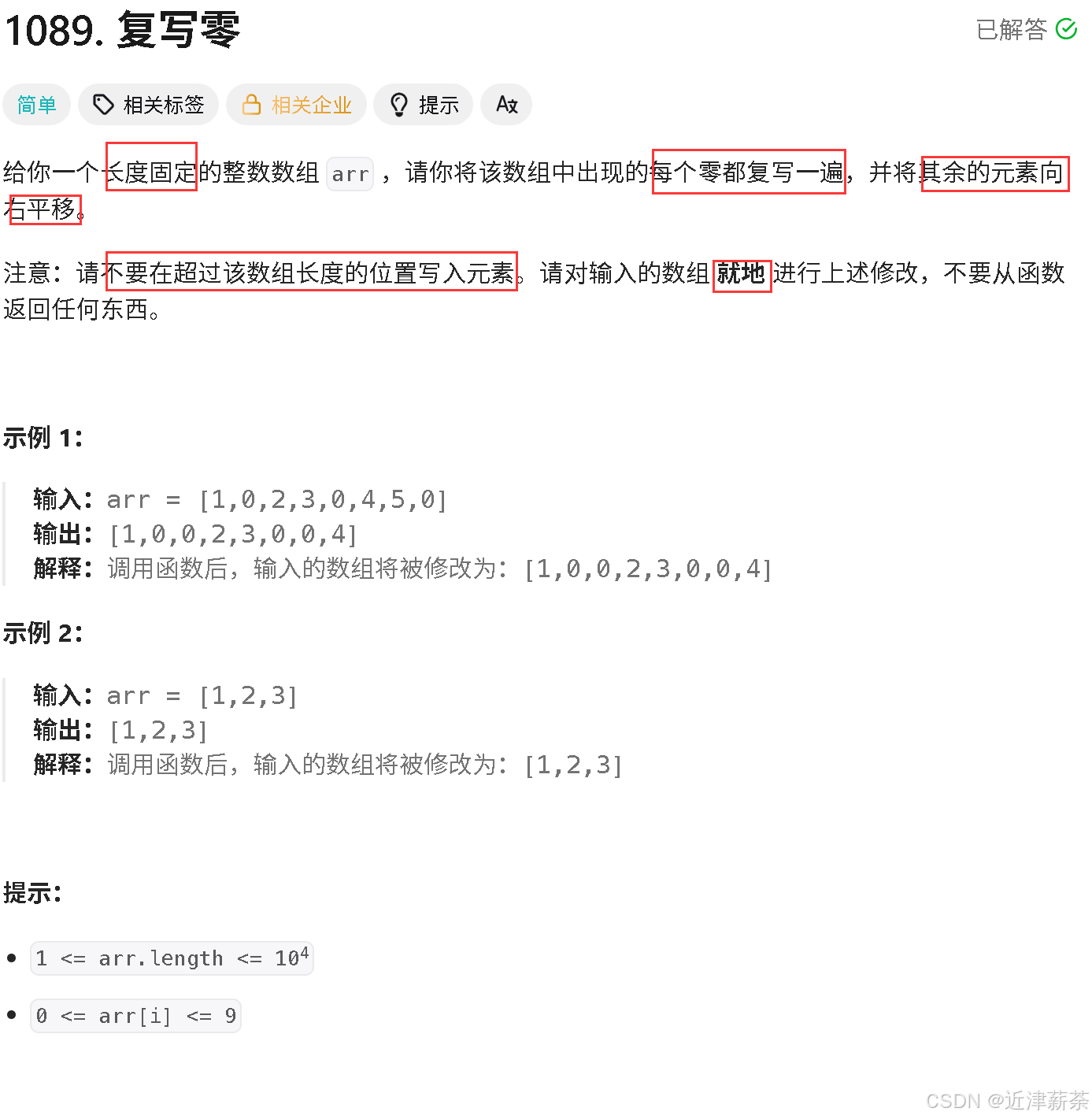 - 复写零,其他元素往右退(会被挤出去)