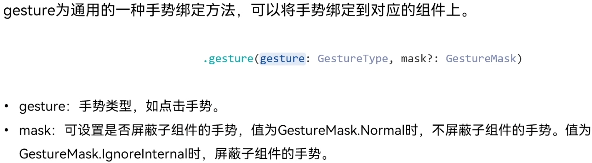 gesture:由多个手势组合而成的数组。用于声明该组合手势的各个手势。