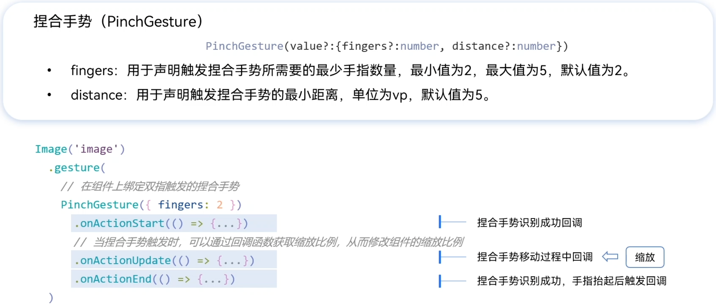 捏合手势用于触发捏合手势事件,参数定义参考PinchGesture。