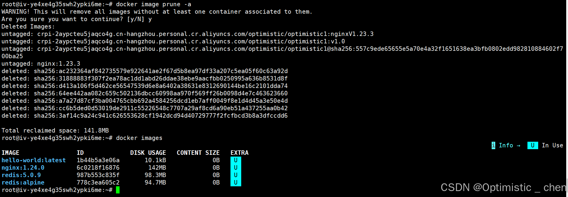 -a(--all):删除全部不适用的镜像--filter filter:指定过滤对象-f(--force):不提示是否删除