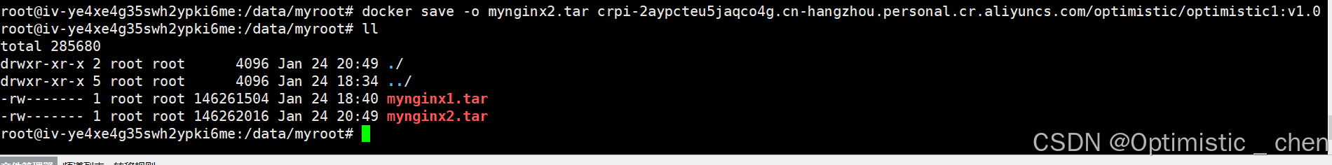 docker save -o mynginx2.tar crpi-2aypcteu5jaqco4g.cn-hangzhou.personal.cr.aliyuncs.com/optimistic/optimistic1:v1.0