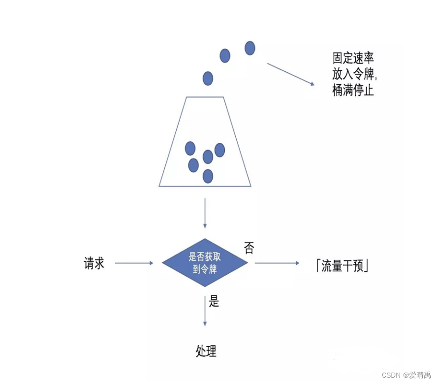 漏桶核心是:请求来了以后,直接进桶,然后桶根据自己的漏洞大小慢慢往外面漏。但是处理突发情况下处理差