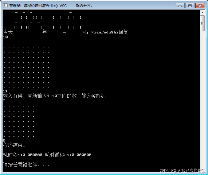 if(!n)cout << "输入1-10之间的数,输入0结束。\n", cin >> n;