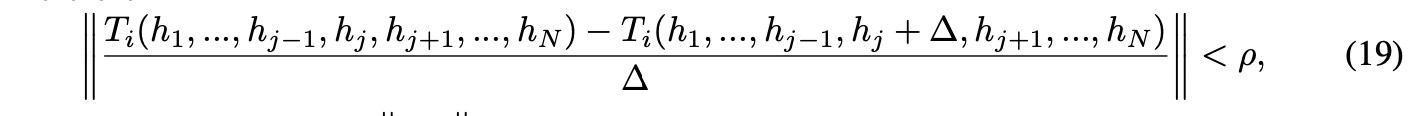为理解这一点,考虑两个向量 h 和 h′ ,其中 h_k = h′_k (对于所有 k ≠ j ),且 h_j + ∆ = h′_j 。根据等式13的定义,对于所有 I,