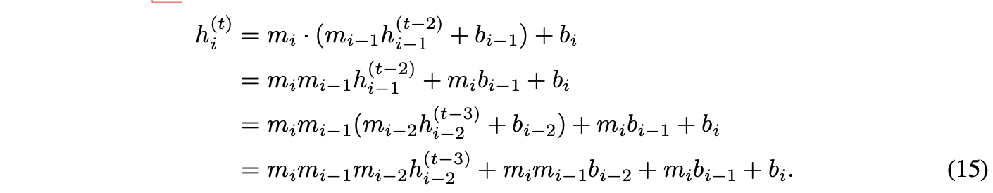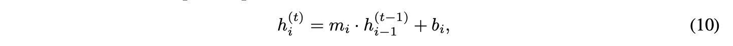 对于每个i,其中mi和bi是传播模型的参数。采用约定:当j ≤ 0时,hj循环指向h。定义h(t) = [h(t), ..., h(t)]⊤。