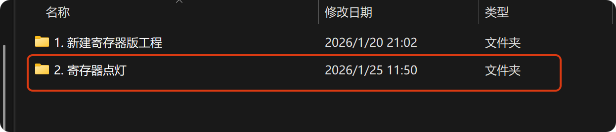 复制新建的寄存器工程,改名为寄存器点灯