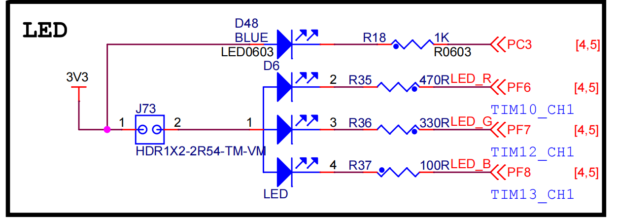 要点亮D6的LED,需要控制PF6/PF7/PF8输出低电平