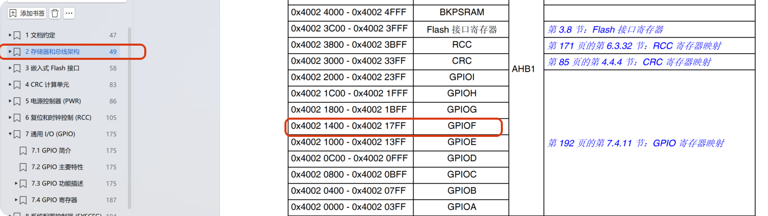 因为要控制PFx引脚,所以寄存器的地址都是基于GPIOF的外设基地址进行偏移