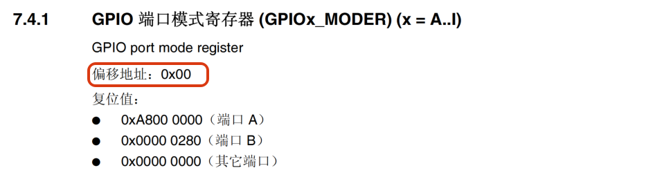 我们需要操作的是地址,所以需要对以上的定义进行强制类型转换,寄存器都是32位的,所以类型为 (unsigned int *)(RCC_BASE+0x30 ),告诉编译器这些数是数据地址,要操作此地址下的寄存器,还需要解引用,如下: