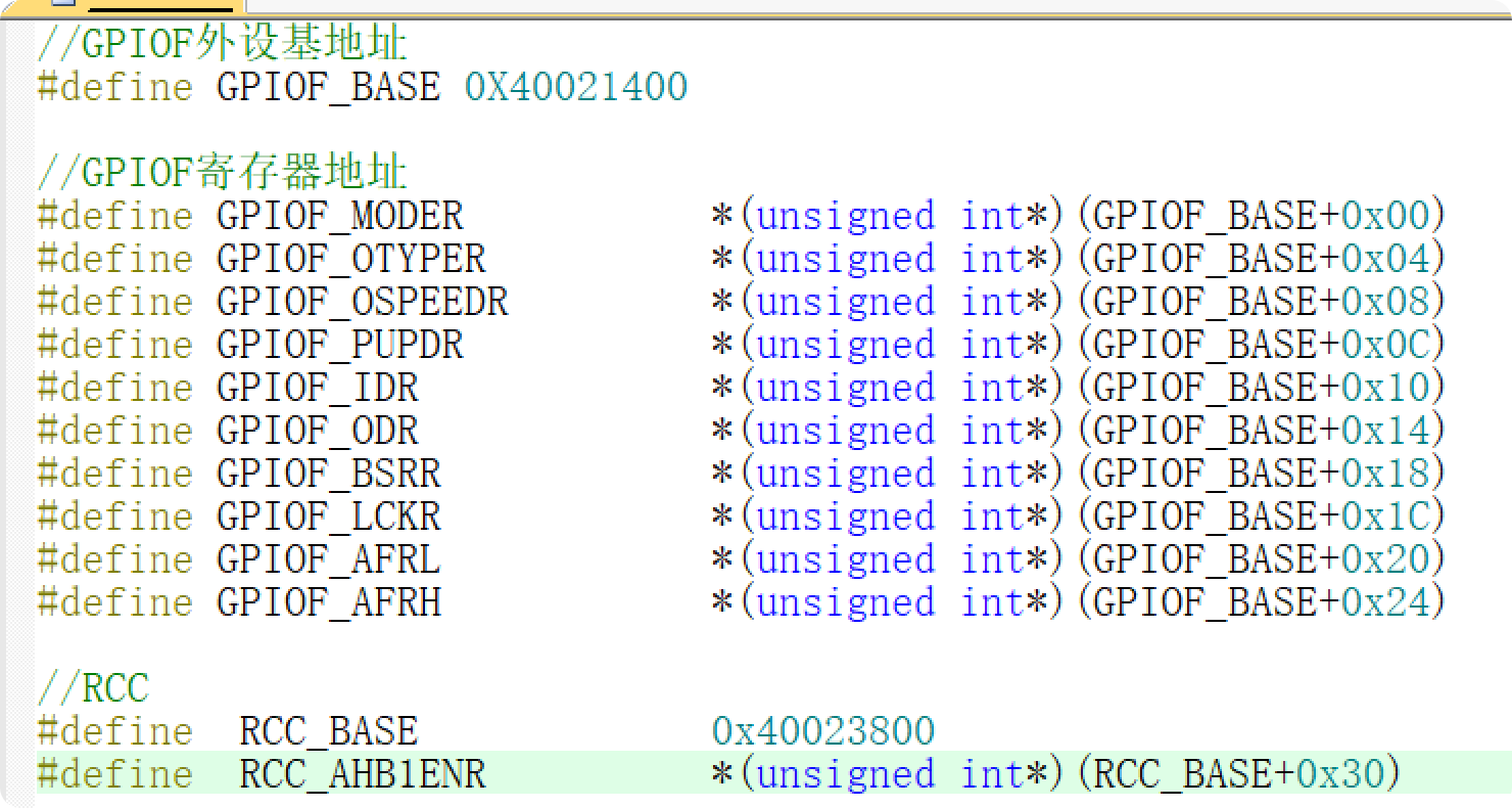 根据偏移地址,定义出GPIOF各个寄存器的地址