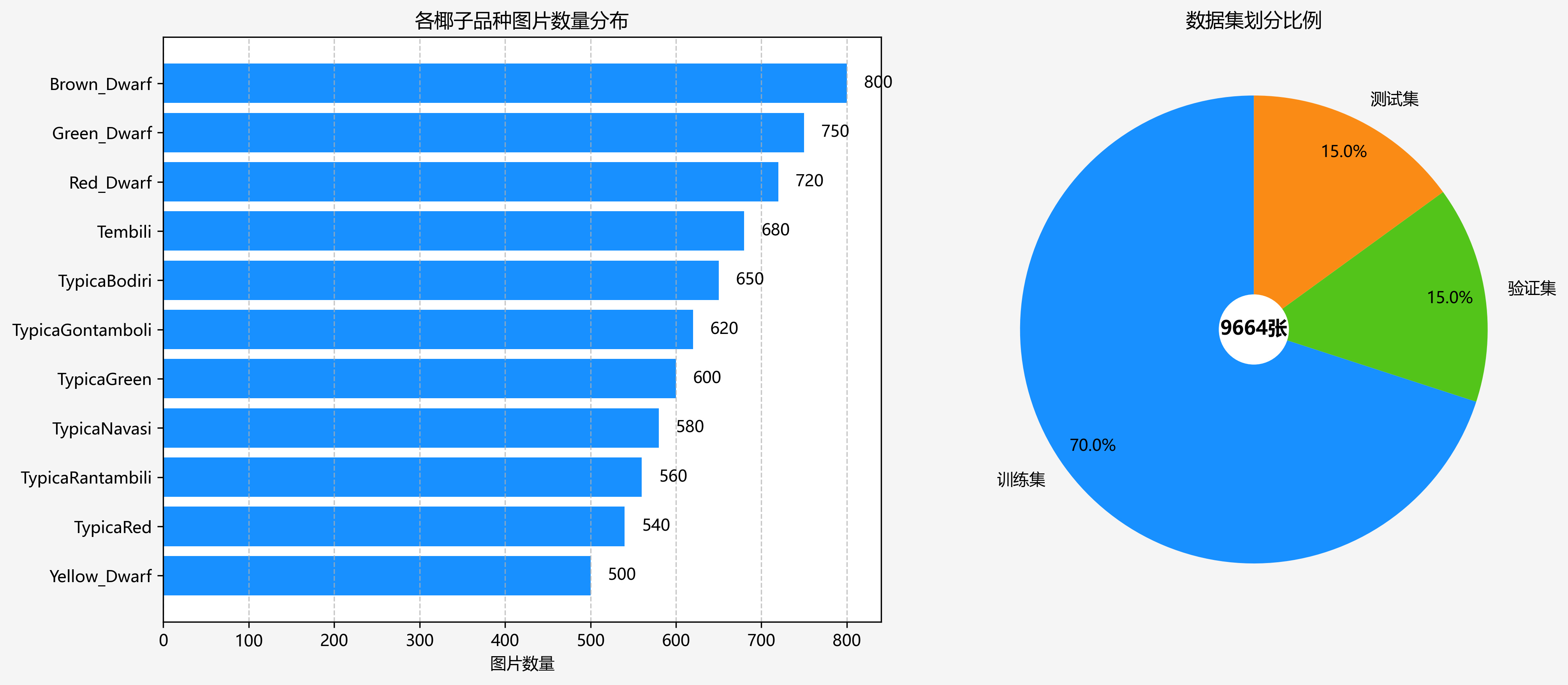 构建高质量的训练数据集是模型成功的关键。对于椰子品种识别任务,我们收集了5种常见椰子品种的图像:高种椰子、矮种椰子、红椰子、绿椰子和杂交椰子,每种品种约500张图像,总计2500张图像。