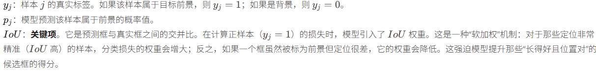 - 强制关联:它强迫分类分支去学习如何识别那些"高质量"的正样本。只有当一个框既包含目标(语义正确)又紧贴目标(位置准确)时,分类分支才会被要求给出最高分。