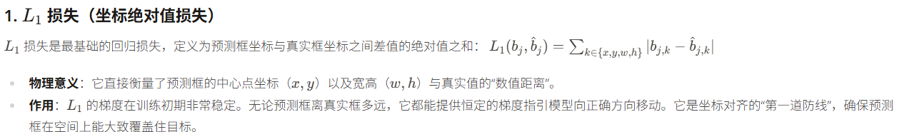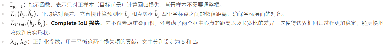 在 MTNet 中,将 L_1 和 L_{CIoU} 结合在一起是一种"粗调+精调"的策略。L_1 负责让预测框快速飞向目标,而 L_{CIoU} 则通过对距离、形状和重合度的综合建模,确保最终预测的边框不仅位置对,而且长宽比也和目标完全契合