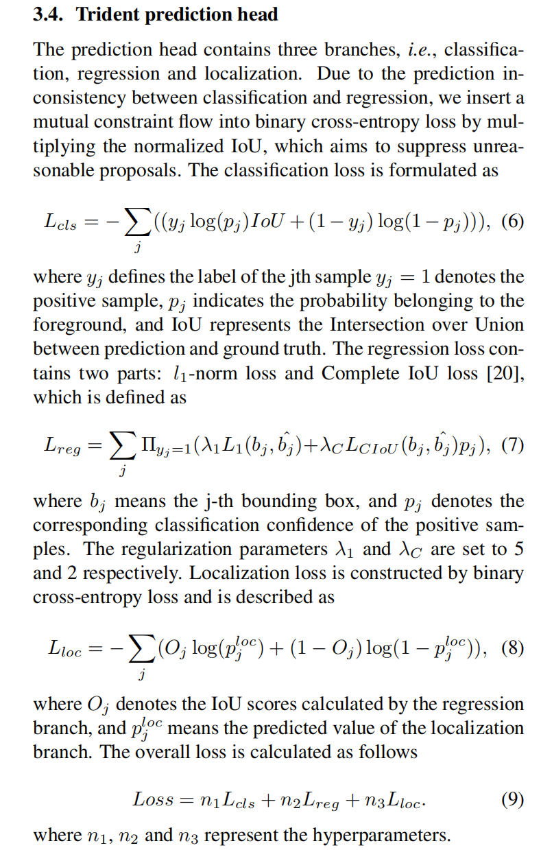 - 分类分支(Classification):负责判断当前的候选区域(Proposal)究竟是属于目标前景还是背景。它输出一个概率值 p_j,指示该区域包含目标的可能性。