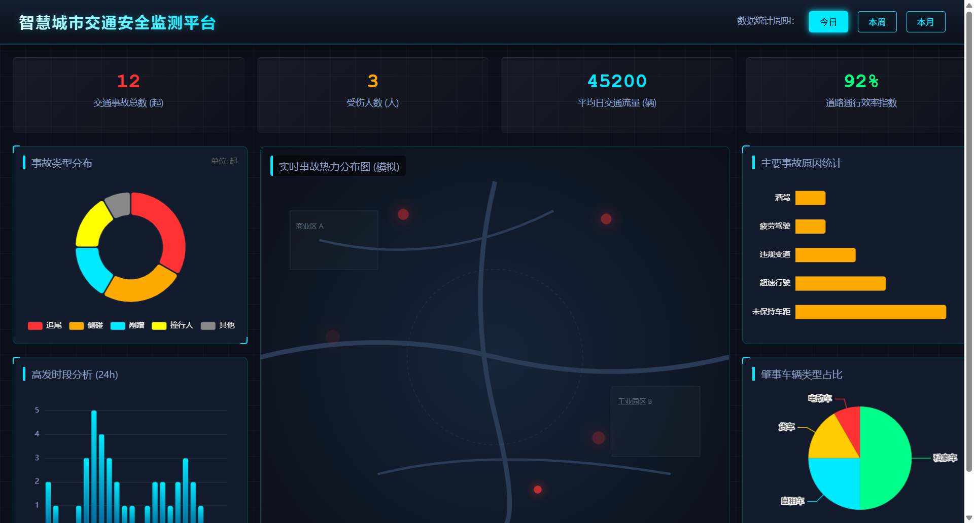- 提升交通安全管理水平:通过数据可视化技术,直观展示交通安全状况,为交通管理部门提供决策支持,从而提升交通安全管理水平。