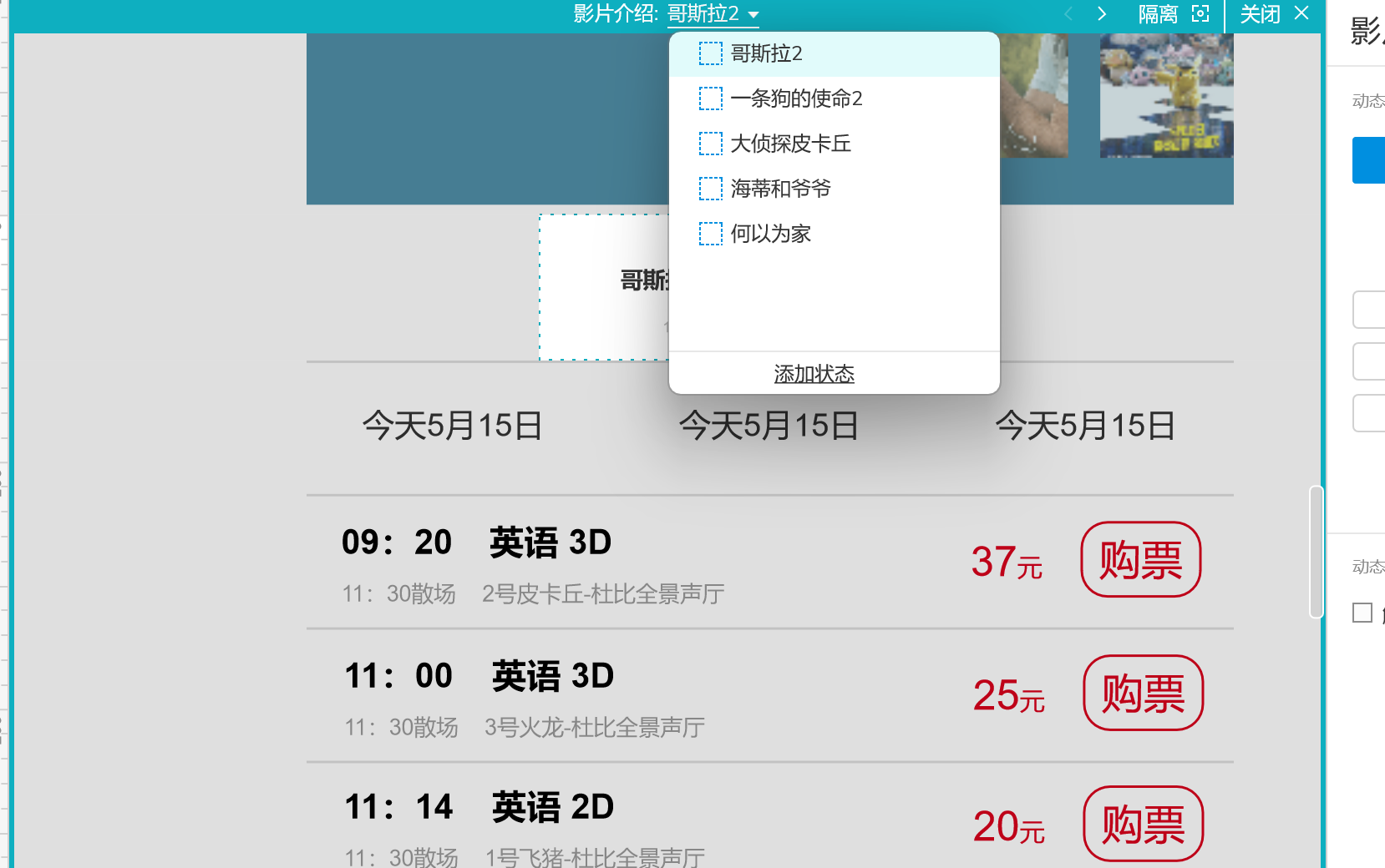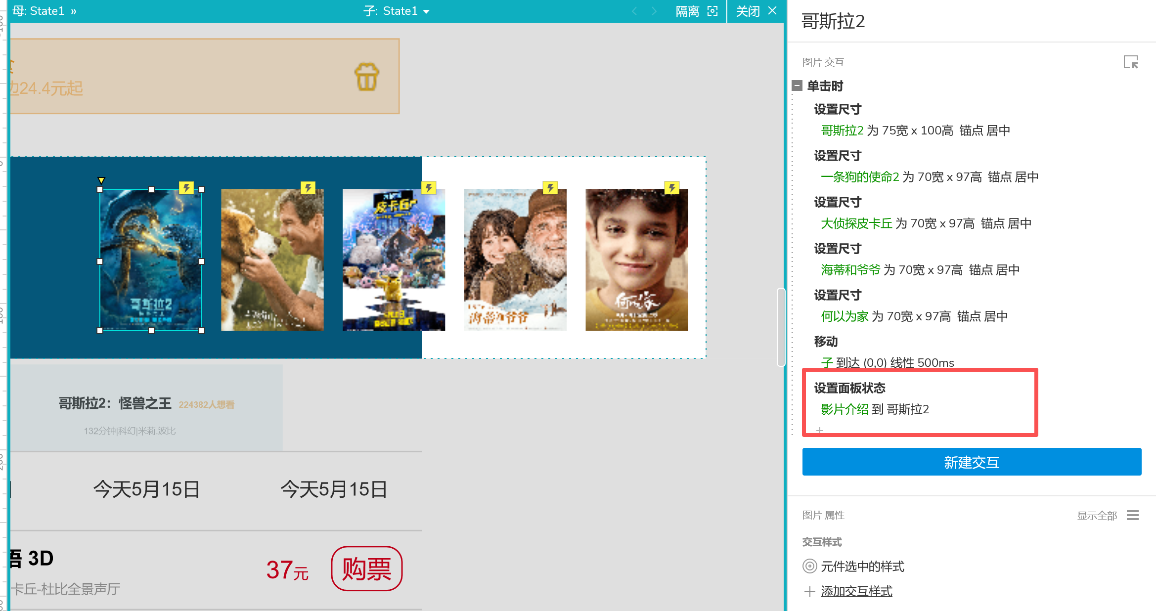 6、将影片简介的交互加入到电影海报交互中。
