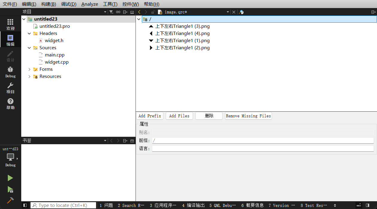 首先,需要创建一个.qrc文件,并将所需的图片资源(如图标)导入项目。