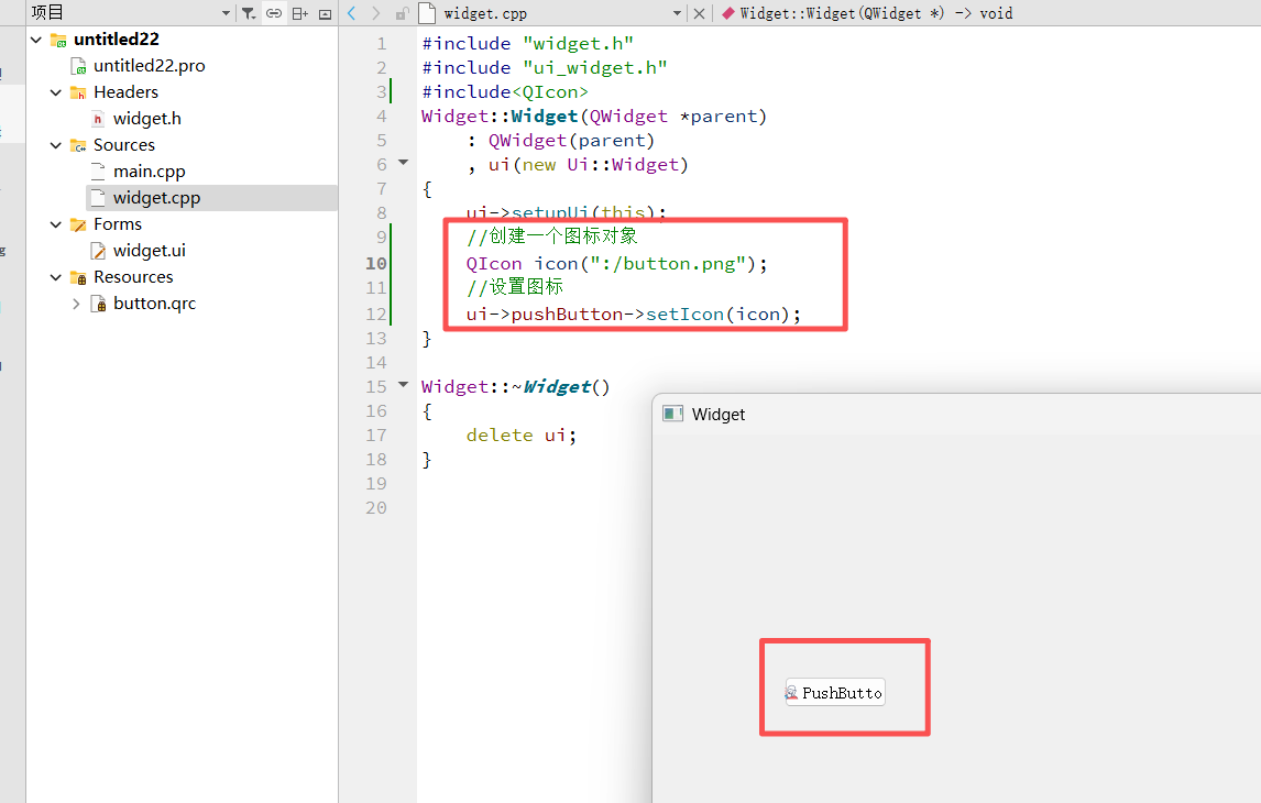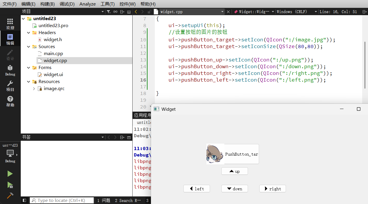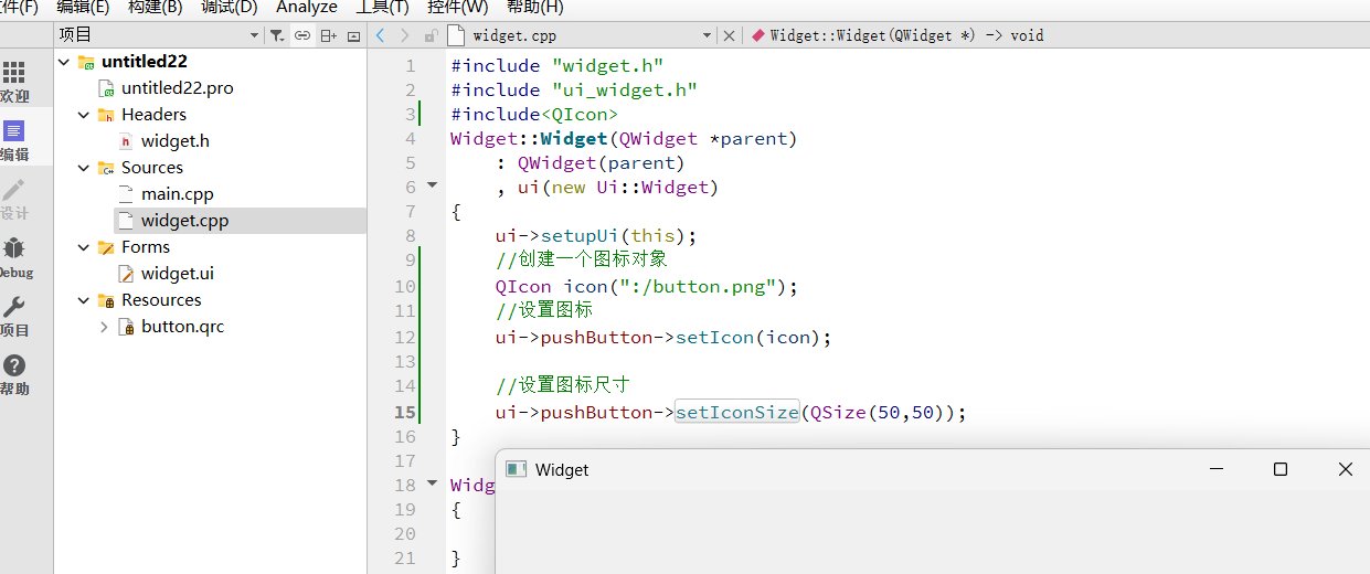 资源导入后,可以通过资源路径(以:/开头)访问这些图片。在代码中,利用QIcon类加载图片,并通过setIcon方法将其应用到按钮上。