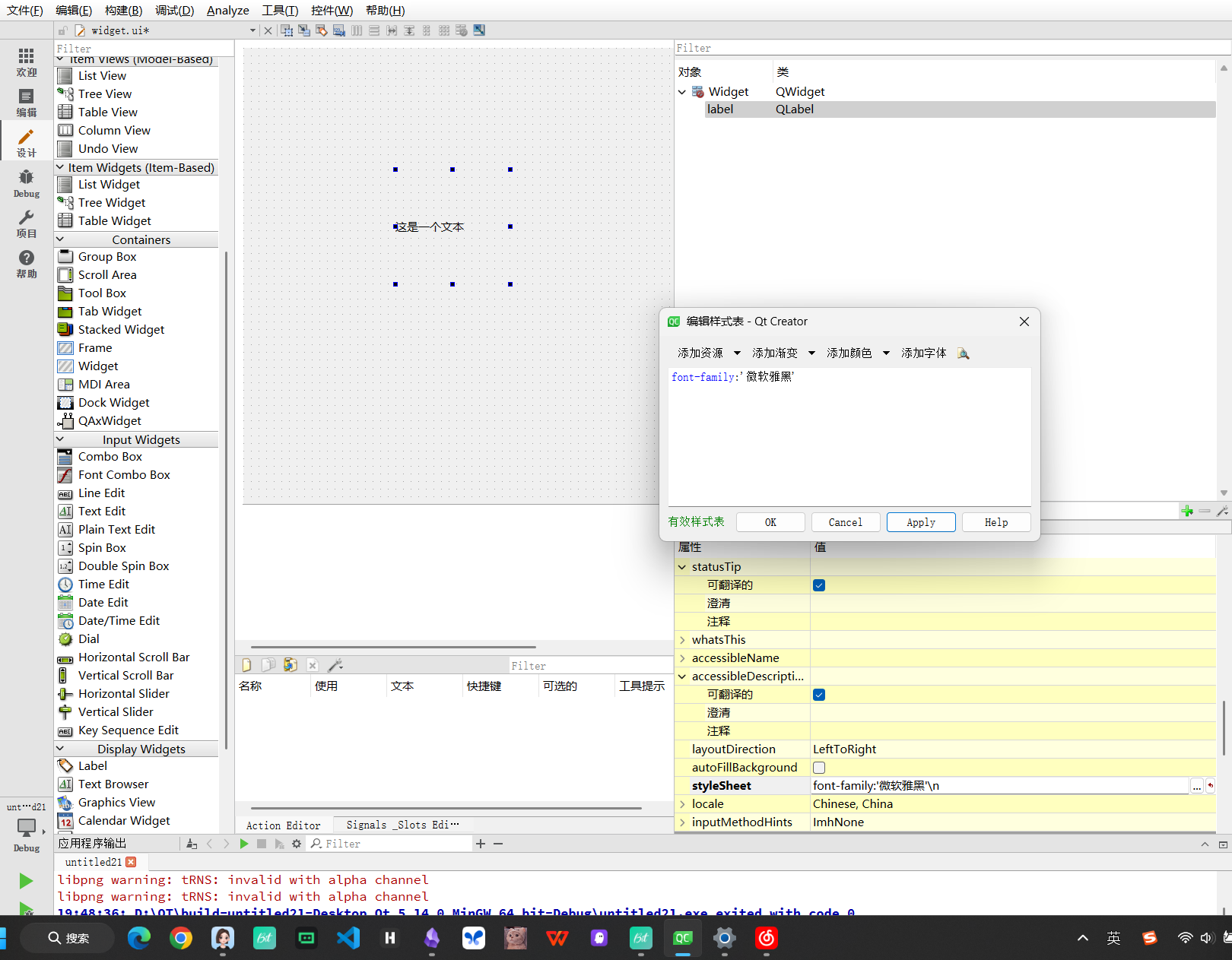 在Qt Designer的设计环境中,样式表可以通过可视化界面直接应用。对于每一个继承自QWidget的控件,其属性面板中均包含styleSheet属性。