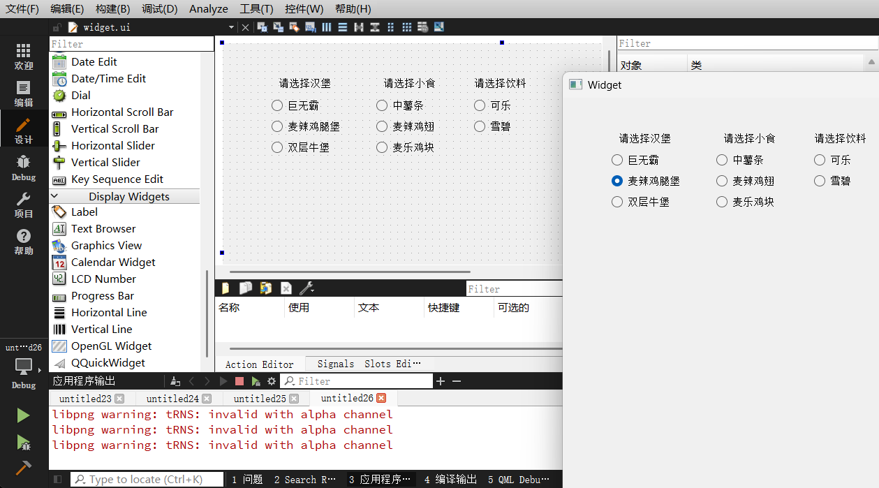默认情况下,QRadioButton的互斥范围是其直接父窗口。如果界面上存在多组无关的单选题目(如模拟点餐系统中的"主食"、"饮料"、"甜点"),若不进行分组,所有按钮将属于同一互斥组,导致用户选了汉堡就不能选可乐。