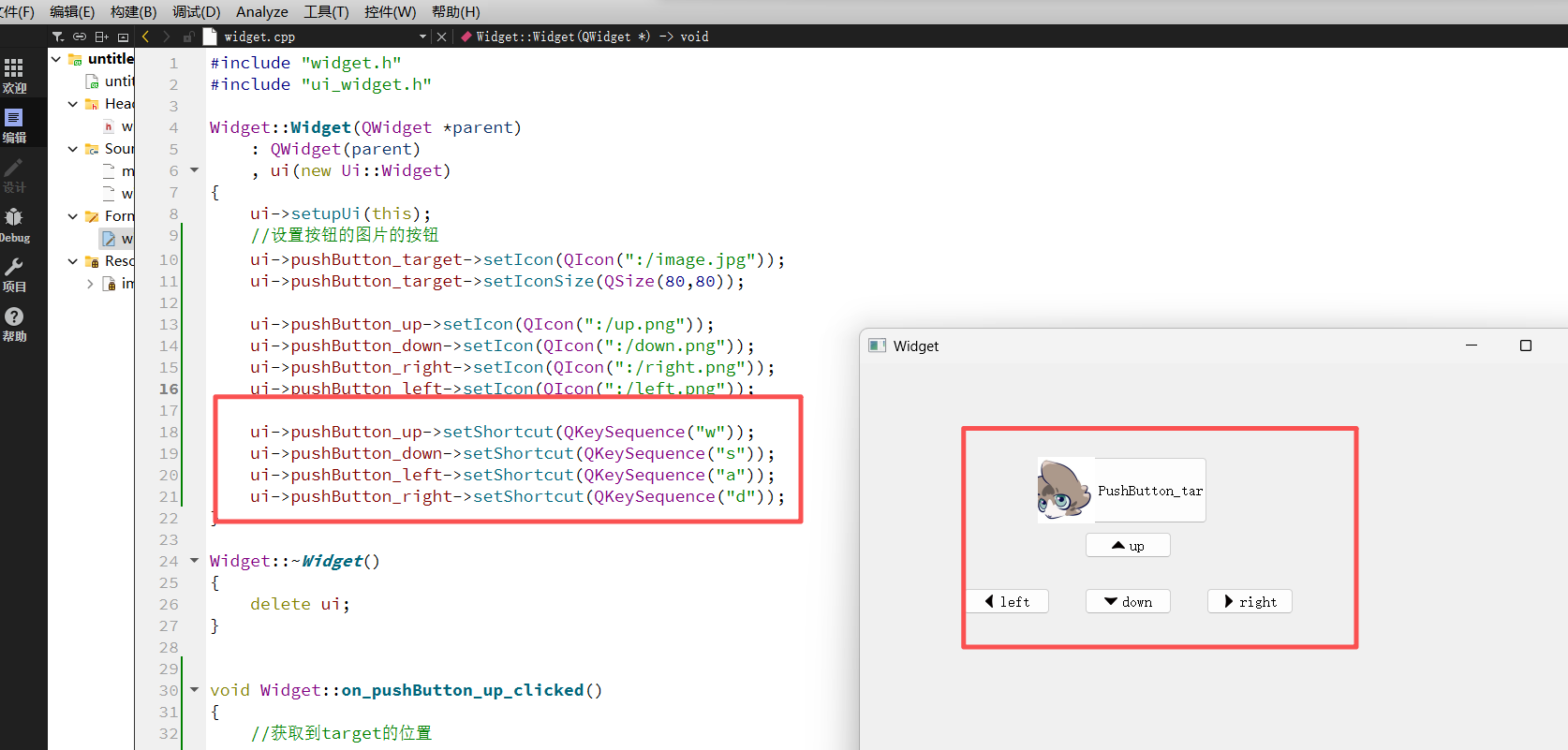 ui->pushButton_up->setShortcut(QKeySequence("w"));