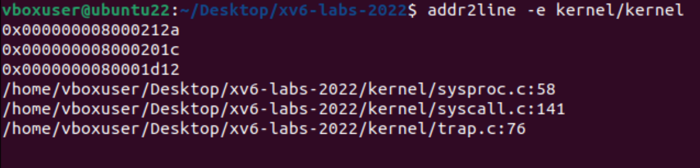 1、当前正在执行的函数的帧指针保存在s0寄存器,将下面的函数添加到kernel/riscv.h