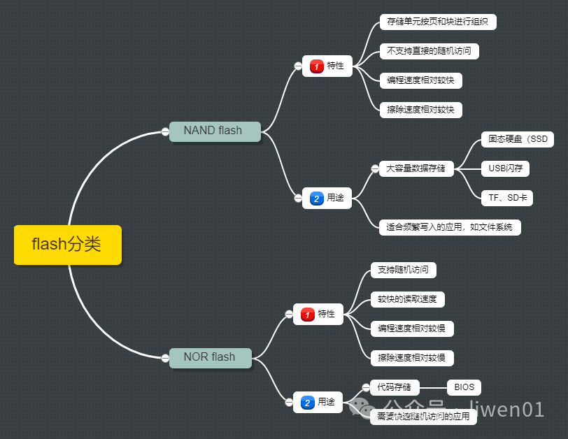 它是一种非易失性存储技术,广泛用于各种电子设备、USB、固态硬盘等产品。它分为NOR Flash 和NAND Flash 两种
