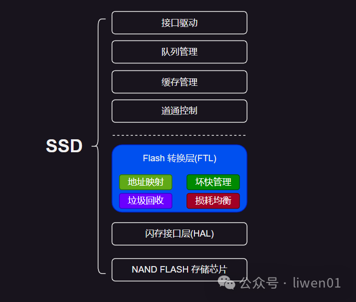 相应的,固态存储的软件架构也要复杂很多。