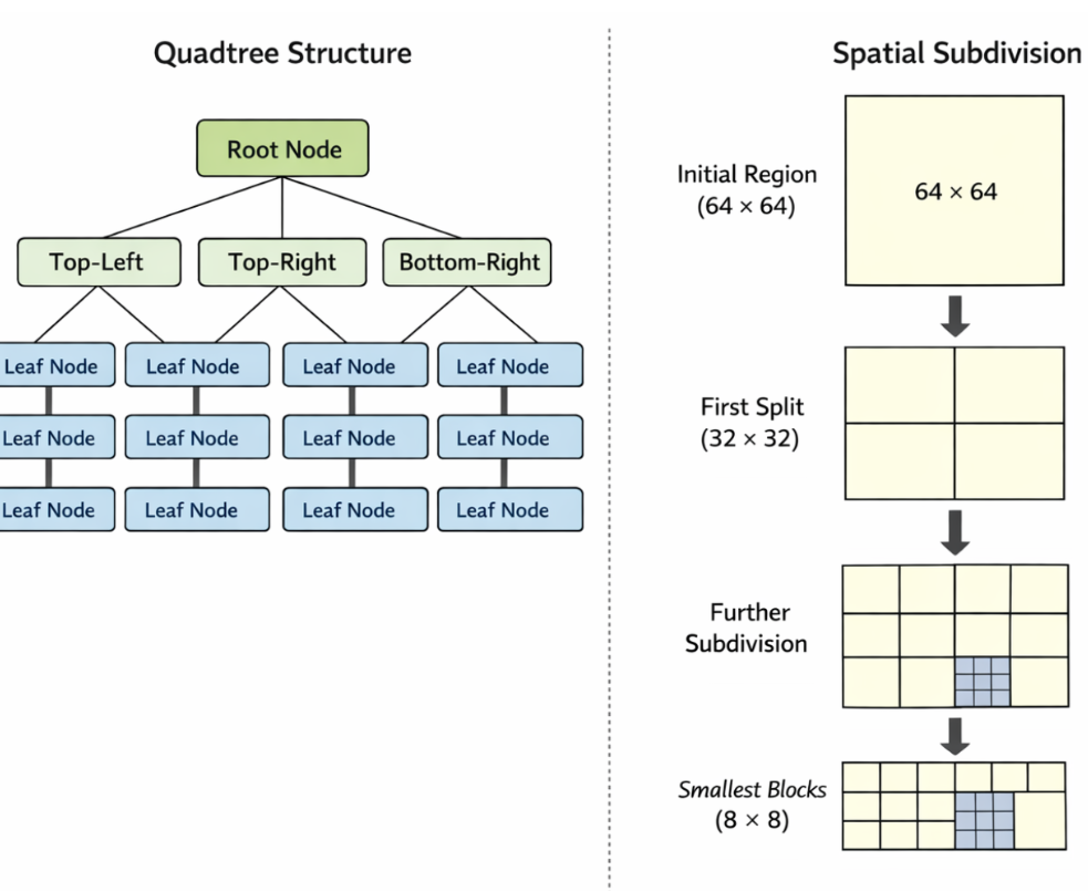 | 信令压缩 | 编码器只需发送简单的"划分标志位(split_flag)",解码器即可重建整棵树。 |
